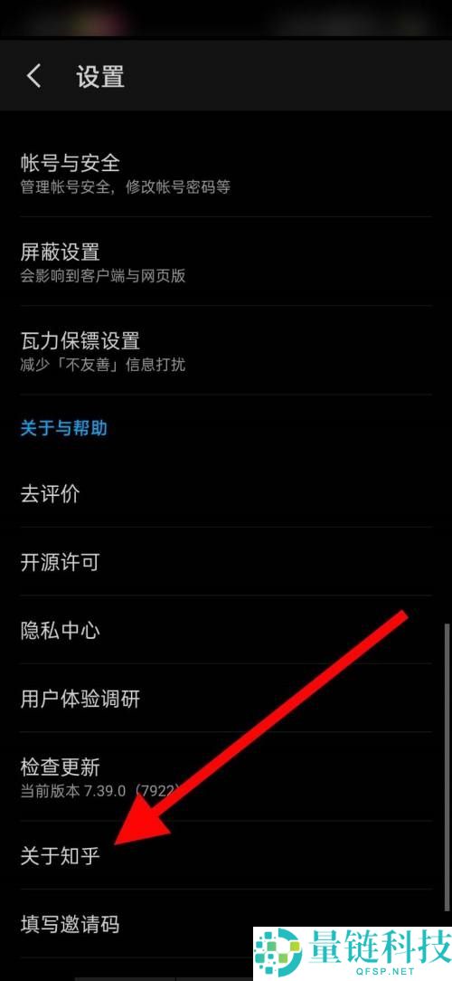 4、页面来到“设置”页面后,点击如图位置的“关于知乎”;