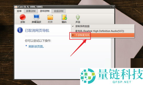 4、最后在声音选项菜单中点击【不录制麦克风】选项即可(如图所示)