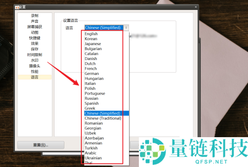 5、最后在语言选项设置菜单中选择需要的语言类型即可(如图所示)