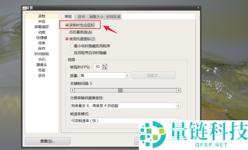 4、最后打开选项菜单后,选择点击录制菜单选项,在录制菜单中选择在【录制时包含鼠标】项前面打钩即可(如图所示)