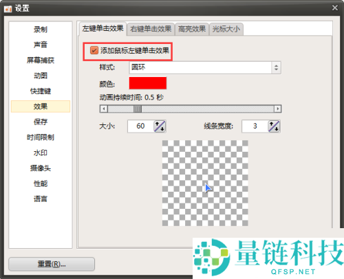 5、最后将添加左键单击效果开启即可,如图所示