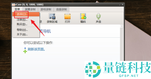 2、然后打开ocam后选择点击菜单栏的选项按钮(如图所示)