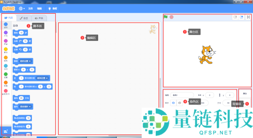 第二步:打开软件后,会进入Scratch Desktop界面,看图就能知道界面的组成。