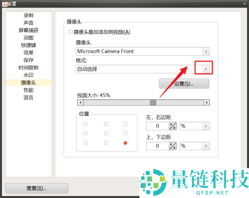 4、最后在摄像头格式选项中选择合适的摄像头格式即可(如图所示)