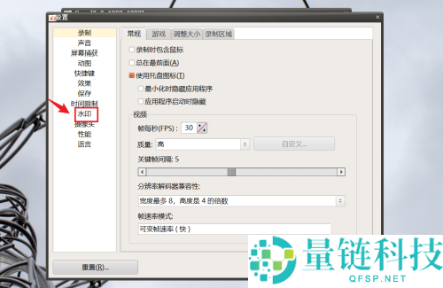 3、在选项设置中选择单机【水印】选项按钮(如图所示)