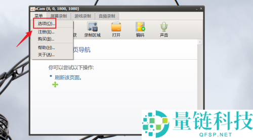 1、首先打开电脑oCam后,选择点击菜单按钮(如图所示)