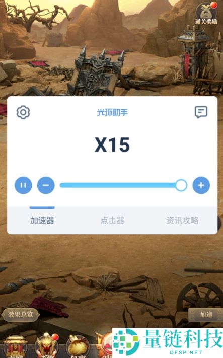 2、点击光环助手悬浮窗即可找到加速页面。根据版本不同最高倍速也不同(常规最高15倍,如下图所示)。