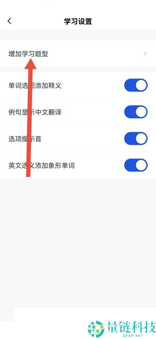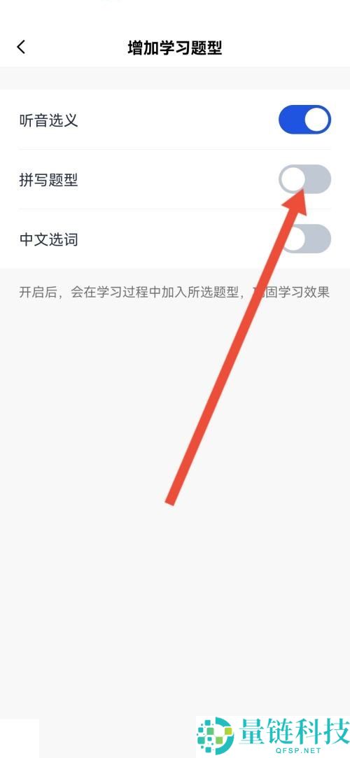 6、最后进入增加学习题型,然后点击【拼写题型】的按钮开启即可。