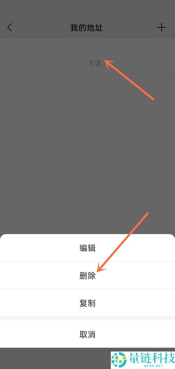 3、最后在我的地址页面长按需要删除的地址后,点击删除即可。