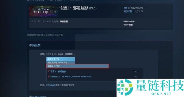 4、最后进入到申请退款页面后,可选择退至steam账户钱包或原支付方式中,点击申请退款即可完成退款。游戏发售前可以随时进行退款处理,发售后适用14天内游玩时间不超过两小时的退款要求。