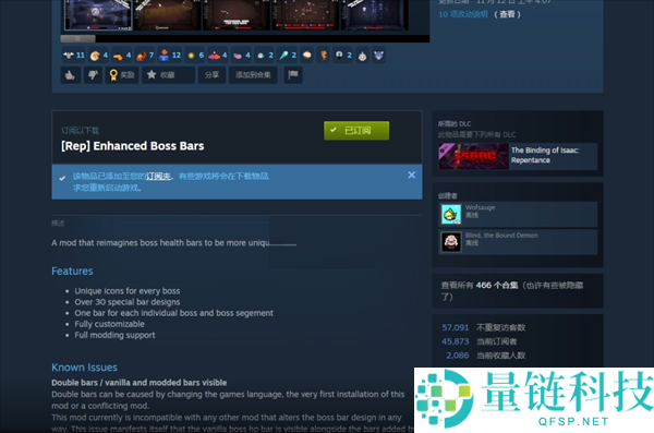 2、在创意工坊中点击自己需要下载的mod,在mod中点击订阅便可下载相对应的mod文件,不过对于大部分游戏来说,mod文件还需要在具体的游戏内容开启。