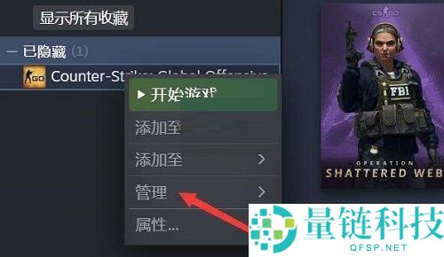 3、接着打开后,就能看到已隐藏的游戏了。右键点击想要显示的游戏,移动到“管理”位置。