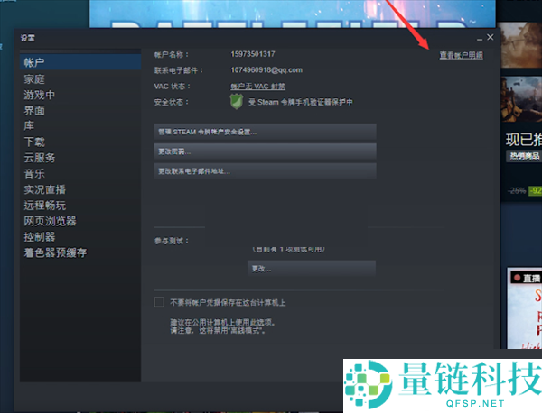 1、在steam客户端主页面中点击左上方的steam选项,随后点击下拉栏中的账户选项,再点击账户明细即可进入详细的steam账号选项。