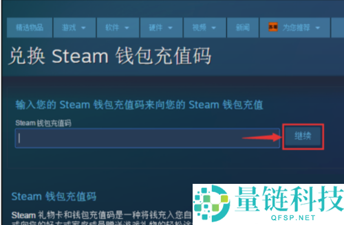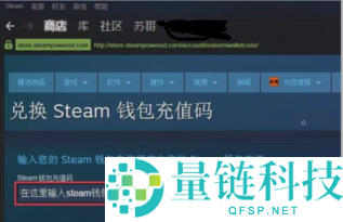 3、然后,在红色箭头处输入steam钱包充值码。