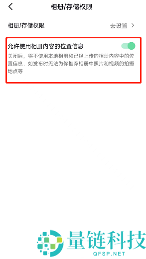 5、最后将【允许使用相册内容的位置信息】右侧按钮关闭即可。