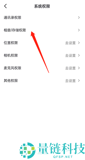 4、点击【相册/存储权限】。