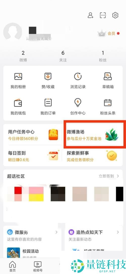3、最后我们就可以看到微博的微博渔场该选项了。