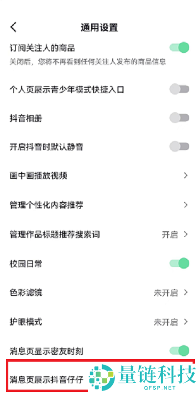4、最后在该功能界面中,就可以点击关闭【消息页展示抖音仔仔】功能按钮,就可以完成关闭设置。