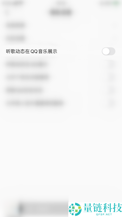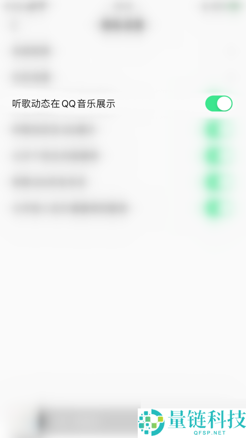 5、最后“听歌动态在QQ音乐展示”后面的圆点变为绿色即表示启用QQ音乐听歌动态在QQ音乐展示成功。