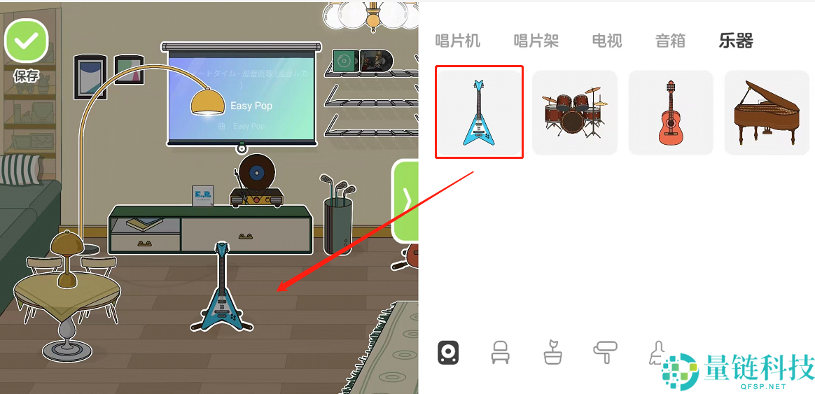 3、点击乐器,选择想演奏的乐器,拖动到音乐空间里。