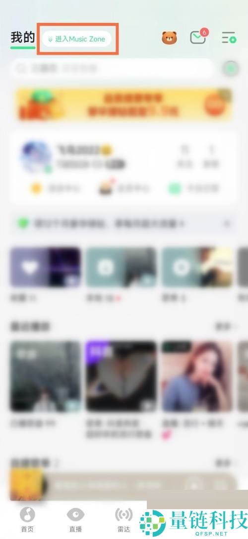 2、然后进入我的界面,点击左上角“进入Music Zone”。