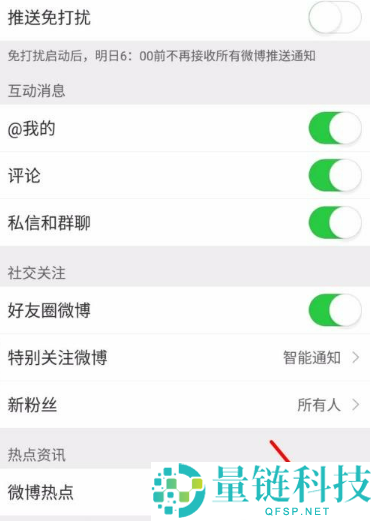第五步:在推送通知设置页面,关闭 微博热点(如图所示);