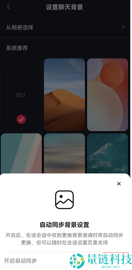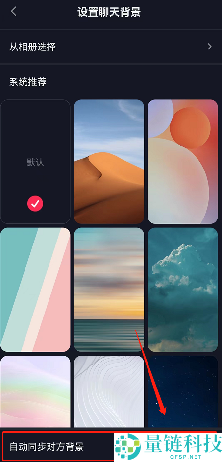 4、接着在聊天背景页面最下方大家可以看到自动同步对方背景功能。