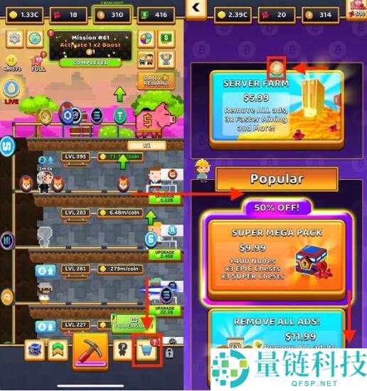 需要注意的是,《比特币矿工》有课金系统,虽然能够增强游戏体验或移除所有广告,但建议以零课金免费体验即可,因为这些商品的售价远高于你每天能赚到的聪价值,相当不划算。