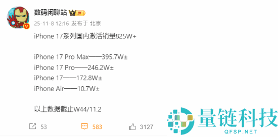系各国内激活销量超825万:Pro Max几近独有一半
