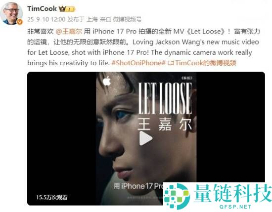 9月10日,苹果公司CEO蒂姆·库克在社交媒体上发文称,非常喜欢王嘉尔用iPhone