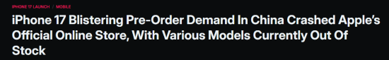 系列预购后,仅过了几个小时,中国市场的火爆需求就直接冲垮了苹果官方在线商店,导致多款机型