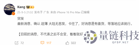 根据苹果配件厂商 数码博主“Kang”最新发文确认,iPhone