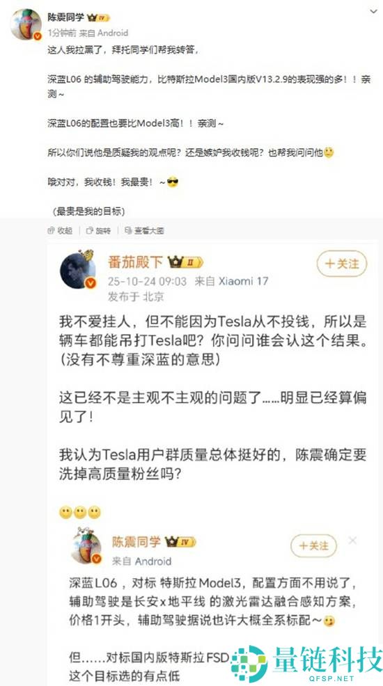 陈震回应“高质量粉丝”质疑:深蓝L06比特斯拉Model