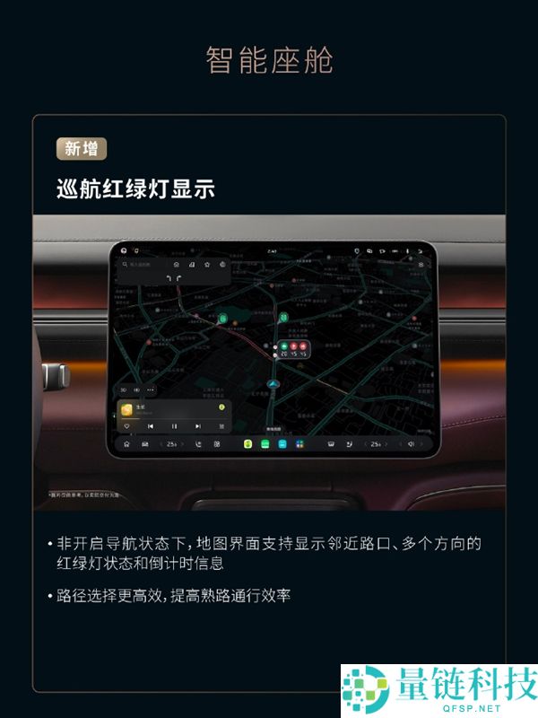 5车机系统,带来六大实用升级。巡航红绿灯显示让非导航状态下的地图界面,也能显示邻近路口的红