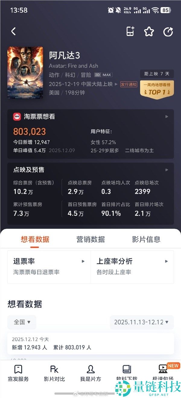 《阿凡达3》还有10天上映 想看人数曾经打破65万