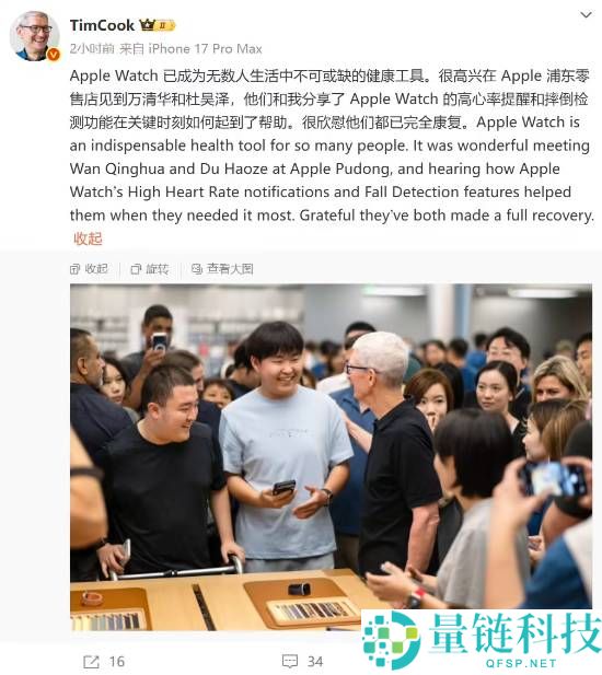 苹果CEO库克亲临浦东店:听Apple Watch救命阅历