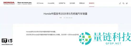 本田中国5月销量55108辆 同比下滑16.8%