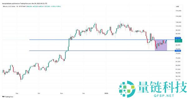 自 3 月 11 日以来,BTC 价格一直在 76,600 美元至 87,500 美元之间盘整。根据技术和链上指标,比特币的盘整可能会持续一段时间。