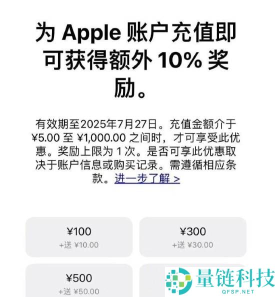 7月25日消息,苹果App Store今日再次推出账户充值限时额外送10%活动,有效期至2025年7月27日。需要注意的是,充值金额介于5元至1000元之间