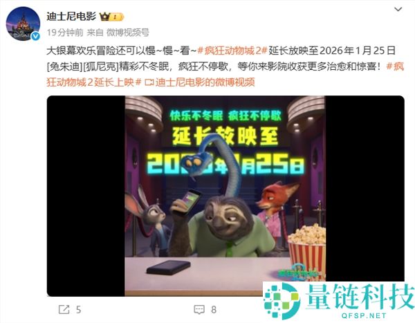 刷新国内影史记载 《疯狂生物城2》公布延伸上映至2026年1月25日