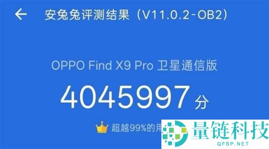 快科技9月16日消息,OPPO Find系列产品负责人周意保今天发文晒图,公布了OPPO Find X9 Pro卫星通信版的跑分,安兔兔V11成绩4045997分,