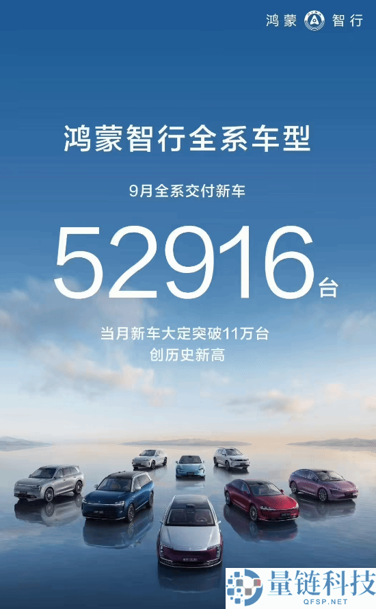 鸿蒙智行9月交付新车52916台,全系累计交付打破95万台