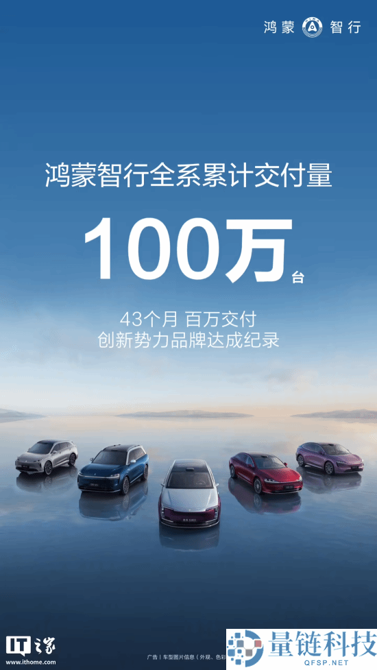 12月5日消息,鸿蒙智行官宣,历时43个月,旗下五界车型累计销量超过100万台,创中国新势力品牌最快百万交付达成记录。最新数据显示,鸿蒙智