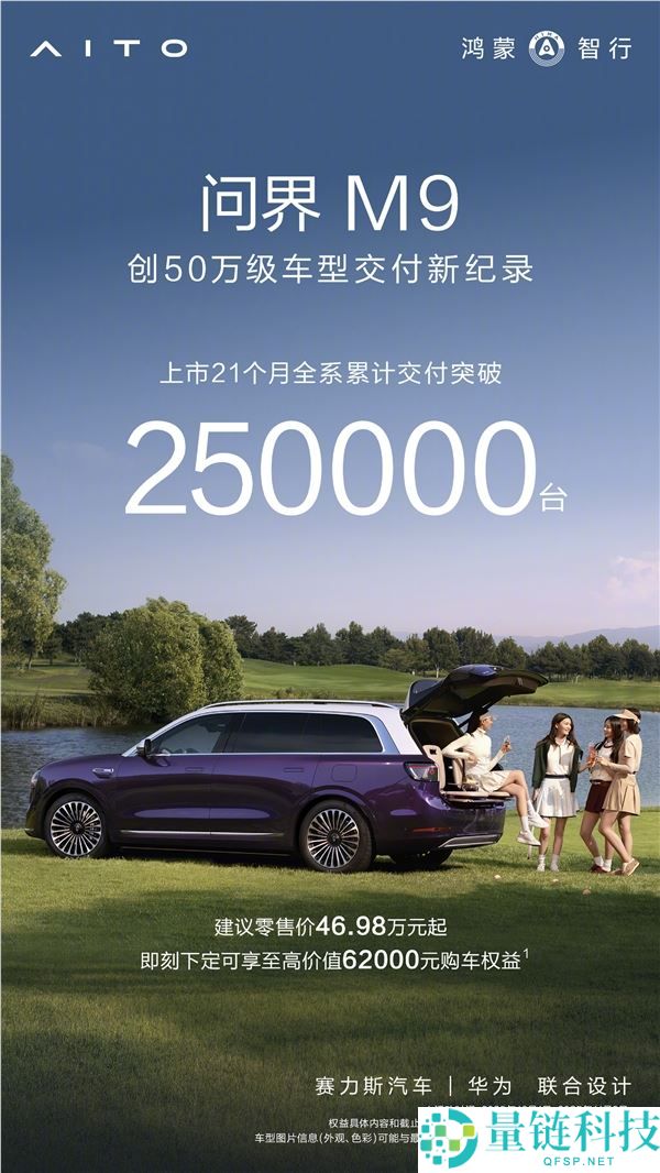 百万鸿蒙智行里独有四分之一,问界M9累计交付超25万台
