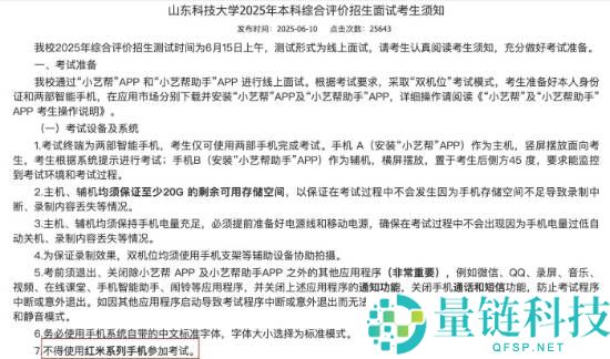 6月16日消息,近日,一则“山东一大学禁用红米手机考试”的消息引发广泛关注。据悉,山东科技大学在6月10日发布的“2025年本科综合评价招生