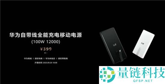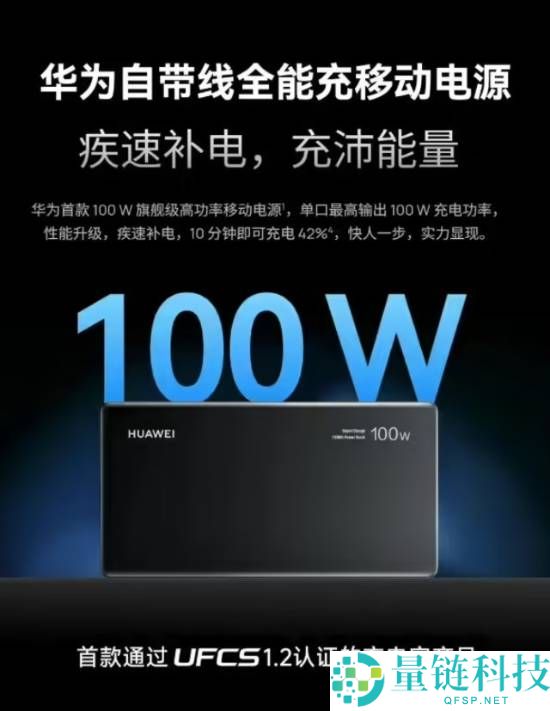 9月4日,华为发布了一款自带线全能充电移动电源,售价399元。据FCA终端快充行业协会透露,这是首款通过UFCS 1 2认证的充电宝产品,支持UFC