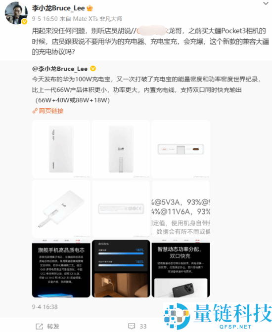 李小龙:华为打破充电宝能量密度 功率密度世界记录