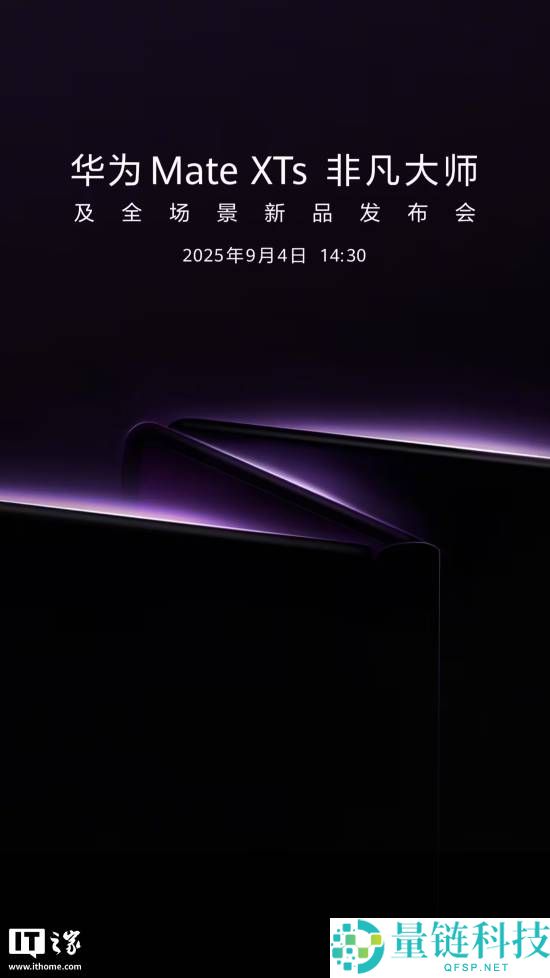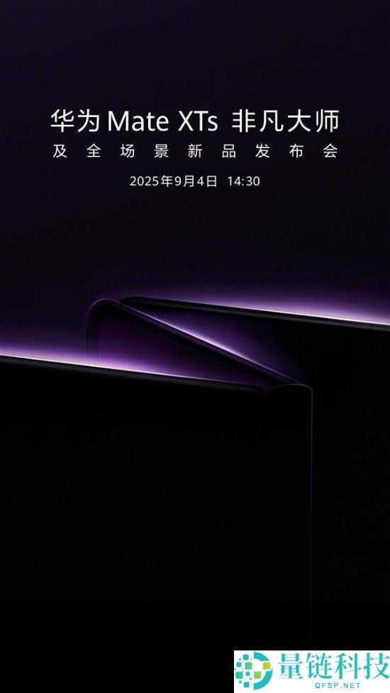 8 月 27 日消息,华为官宣将于 9 月 4 日 14:30 举办华为 Mate XTs 非凡大师及全场景新品发布会,将发布新款华为三折叠屏手机