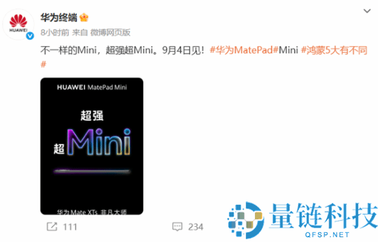快科技8月29日消息,要“干翻”苹果的不只有新一代三折叠,还有华为第一款mini平板。今天,华为官方正式宣布进军小屏平板赛道,将于9月4日