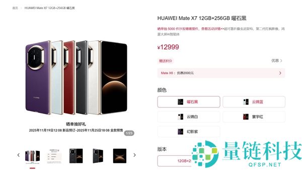 12999元起 一图认识华为Mate X7,首发20GB内存 最强折叠屏